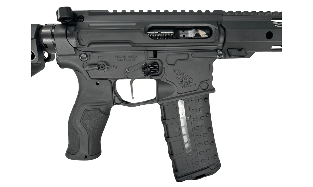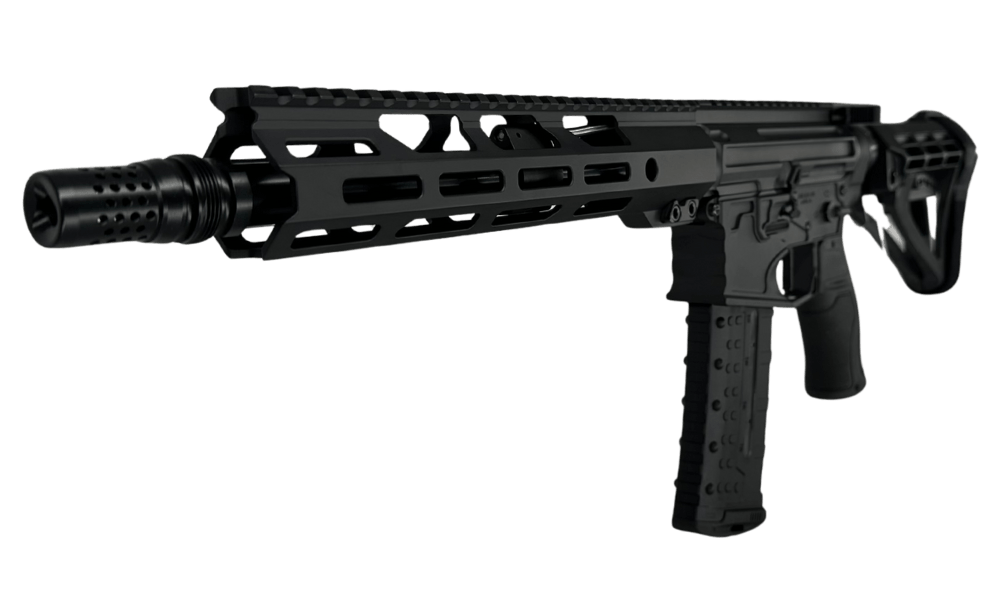 The lower receiver is equally optimized, featuring ambidextrous safety controls for left- and right-handed shooters. A TriggerTech Duty Trigger provides a consistent, crisp break, while the FAB Defense Gradus grip, designed with a reduced angle, minimizes wrist strain for greater comfort during extended shooting sessions. To round out the build, we include the SBA4 pistol brace, delivering stability and control in a compact footprint.