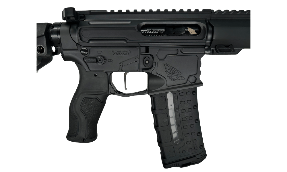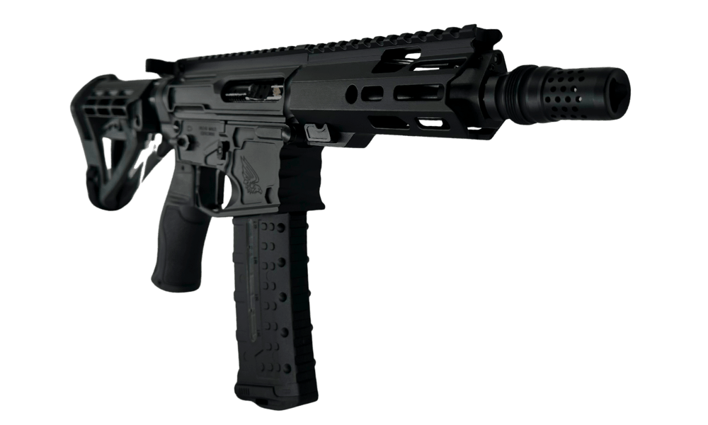 The lower receiver is equally optimized, featuring ambidextrous safety controls for left- and right-handed shooters. A TriggerTech Duty Trigger provides a consistent, crisp break, while the FAB Defense Gradus grip, designed with a reduced angle, minimizes wrist strain for greater comfort during extended shooting sessions. To round out the build, we include the SBA4 pistol brace, delivering stability and control in a compact footprint.